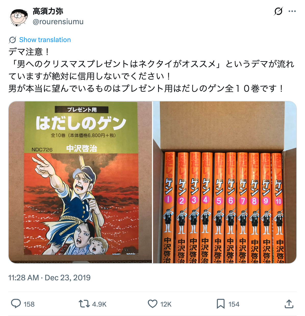 | … | 14無念Nameとしあき25/12/22(月)13:48:22No.1374840083>今は広島の学校や図書館からも撤去されてるけど、その代わりに単行本の売り上げが伸びてるから結果オーライっぽい |