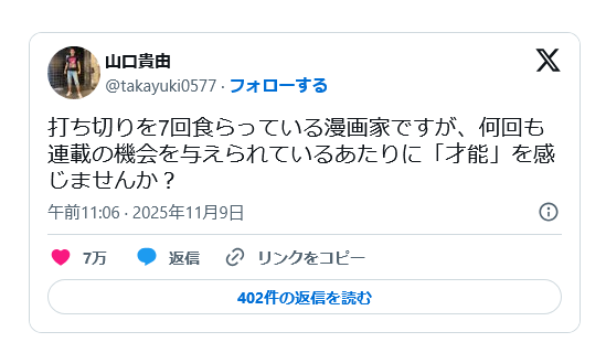 | … | 420無念Nameとしあき26/01/13(火)23:01:19No.1379978321俺が2巻打ち切り喰らったときは |
