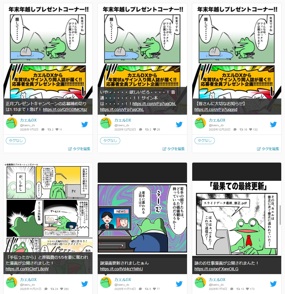 | … | 34無念Nameとしあき26/01/24(土)12:19:07No.1382322303>まだ活動してるのかカエル |
