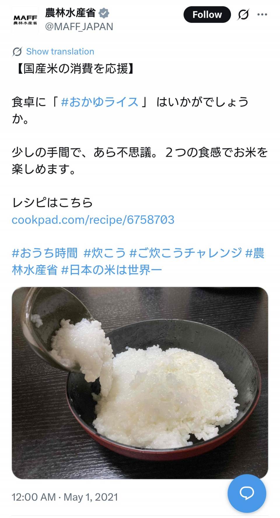 | … | 27無念Nameとしあき26/01/27(火)00:28:05No.1382961539>農林水産省オススメのお粥ライスだってあるしな |