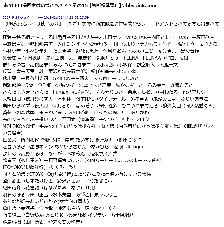 | … | 60無念Nameとしあき26/01/28(水)09:15:41No.1383210253うらべすうは一列譲二とか名前かえてエロ漫画かいてたな |