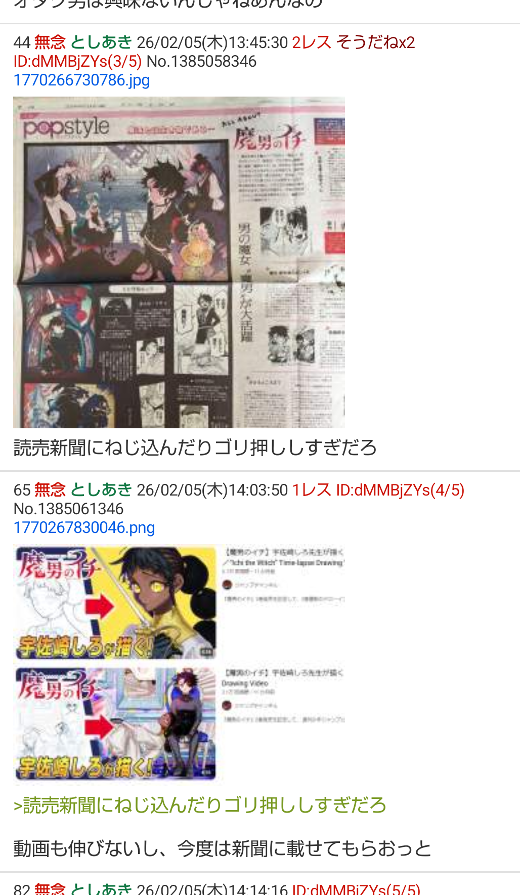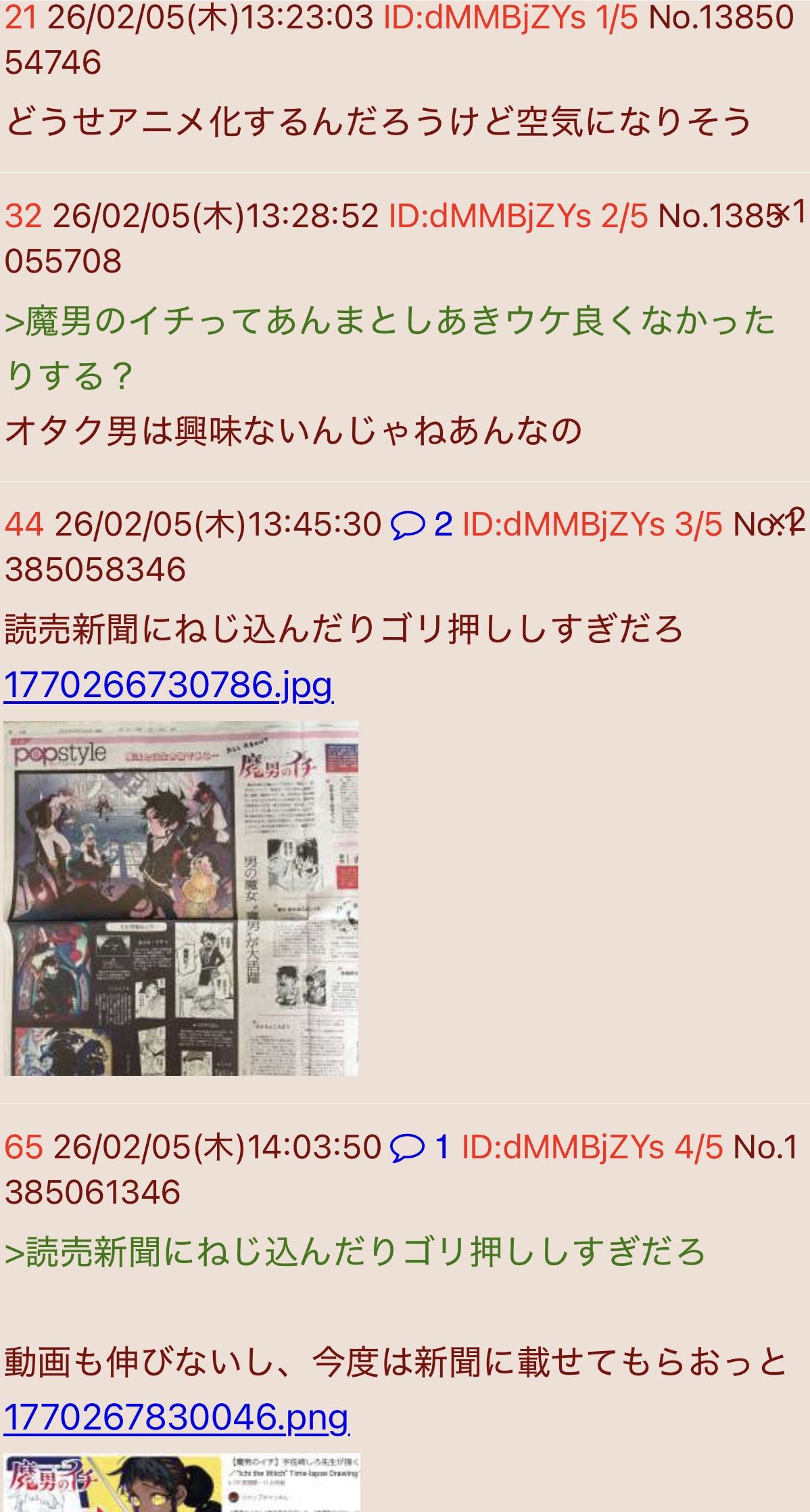 | … | 69無念Nameとしあき26/02/05(木)14:05:54No.1385061681 1770267954848.jpg-(309808 B) ![]() >動画も伸びないし、今度は新聞に載せてもらおっと |