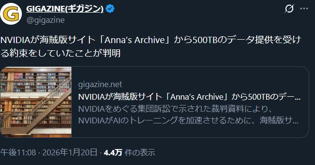| … | 231無念Nameとしあき26/02/09(月)19:56:20No.1386200623>Xの反AIがそう言ってる反AIのとしあきも全員そうに違いない!って事? |