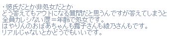 | … | 277無念Nameとしあき26/02/19(木)23:19:42No.1388577620 1771510782419.jpg-(151604 B) ![]() >>千晶かわいい… |