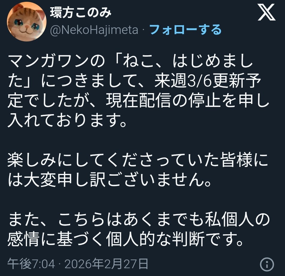 | … | 921無念Nameとしあき26/02/28(土)10:14:59No.1390534494>古今東西「原作のやらかしのもらい事故食らった作画担当がそれなりの埋め合わせの仕事を回してもらえた」なんて例はまず聞かんからな |