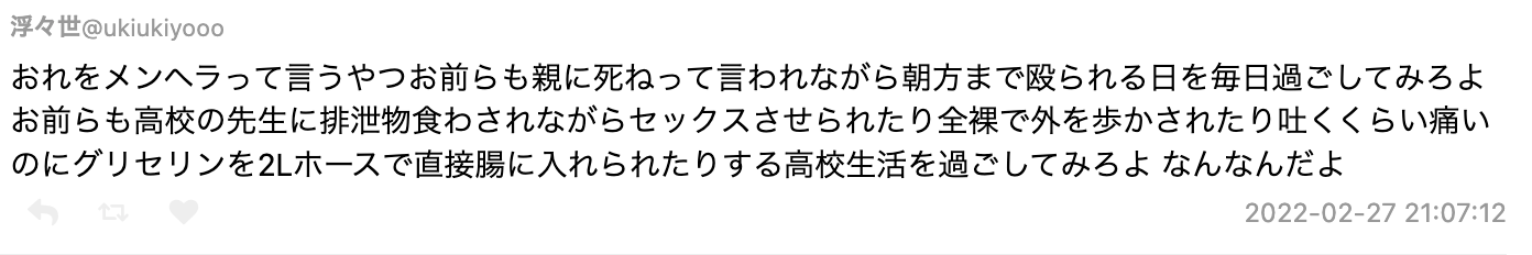 | … | 91無念Nameとしあき26/02/28(土)07:11:30No.1390510864>レイプして精神ぶっ壊した女の描写と壊した男の所感辺りなんか実体験だろうし |