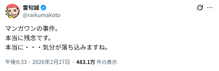 | … | 979無念Nameとしあき26/02/28(土)10:23:44No.1390535997雷句誠の正しさが証明されてしまった |