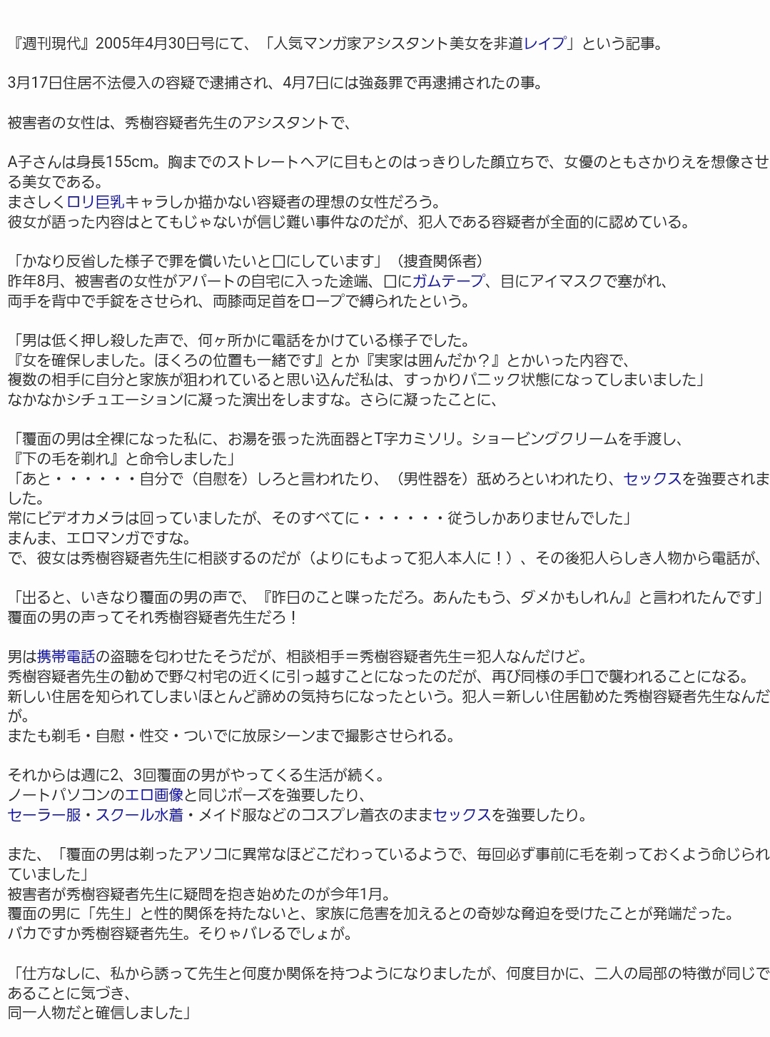 | … | 58無念Nameとしあき26/03/02(月)10:05:12No.1391053201 1772413512197.jpg-(630473 B) ![]() >アシスタントをレイプ監禁して逮捕 |