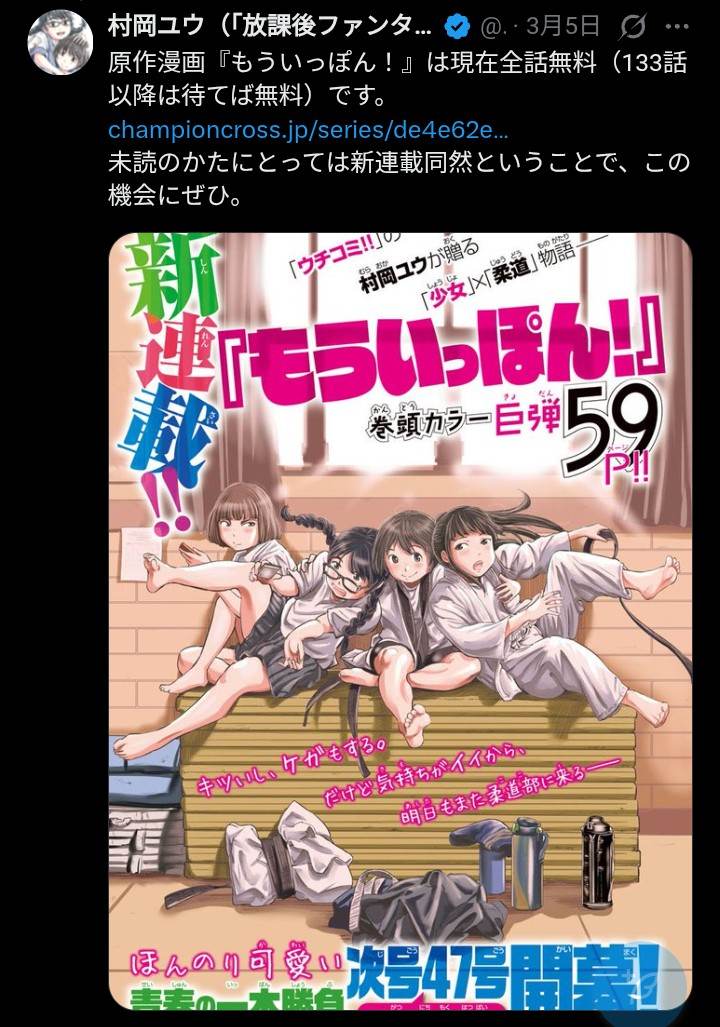 | … | 83無念Nameとしあき26/03/18(水)14:21:30No.1394680099アニメの再放送をきっかけにもういっぽん!を再読してるけど週刊なのに高密度で丁寧で試合のアクションもしっかり描いててスゲーなってなってる |