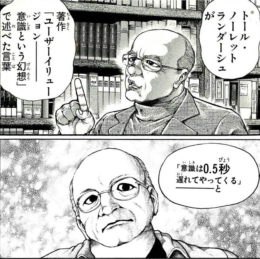 なんらかの刺激で身体が無意識に動いてから0.5秒後に脳がその動きを認識する…ってこと? |