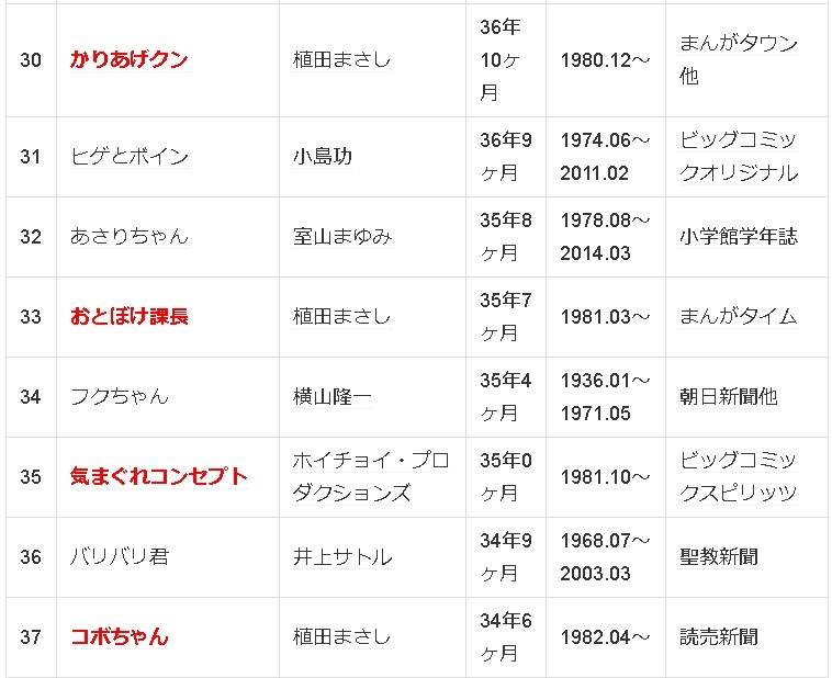 日本の長期連載漫画ランキング(2016年9月現在) |