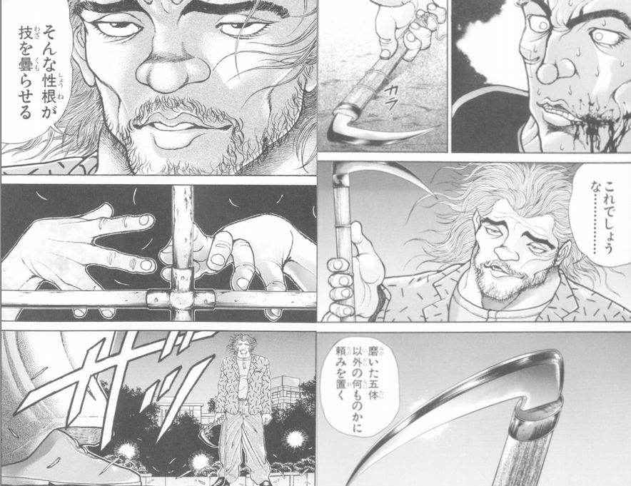 初期刃牙のときバキが本部の所に柔術習いに来たときも上半身裸になっていたけど相当マッチョだったよ |