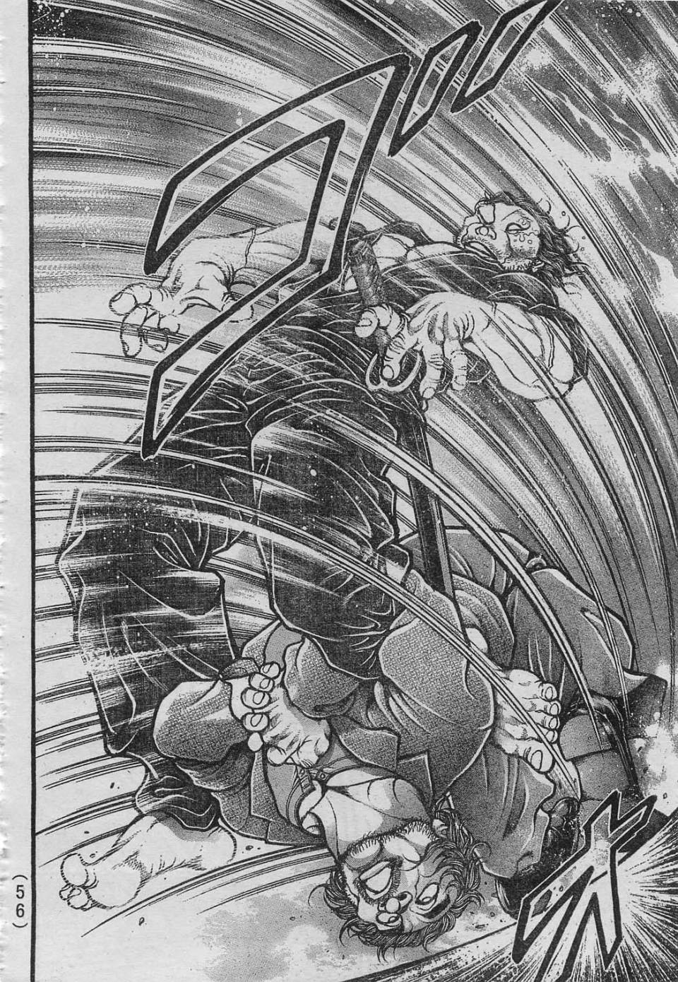 決着付きそうな所で勇次郎が割り込んで本部が吹っ飛ばされる |