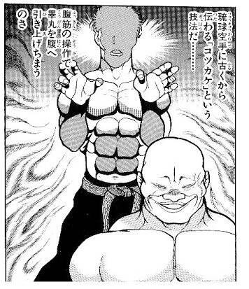 空手の師範(今70くらい)が若い頃には金玉腹のなかに入れるのは本当にやってたと言ってた |