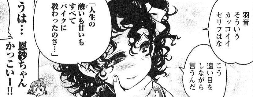 バイク部全員可愛いと思うけどやっぱ作中で「可愛い」と明言されてるキャラは一段可愛く描かれてる気がする |