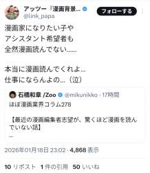 542 26/01/20(火) 漫画を全然読まないけど漫画家になりたい人が増えているようだ 09:07:39 [漫画家志望]